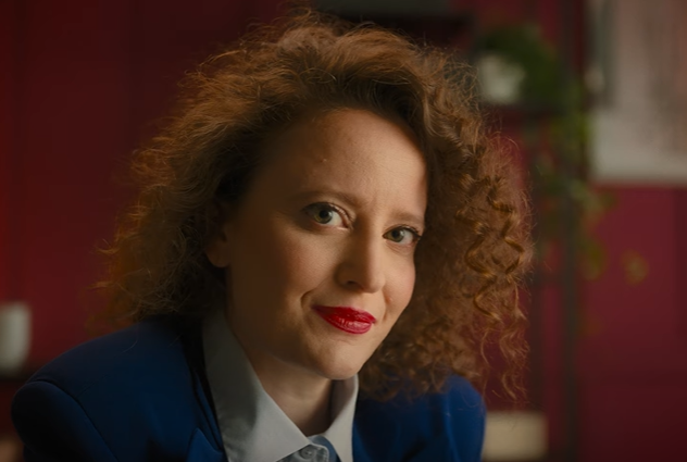 A woman enters an elevator and sees her reflection turn into a second version of herself. She steps into a waiting room filled with identical clones—same hair, outfit, expressions. It’s a literal representation of job-hunting dread: the fear of being just another face in the crowd.