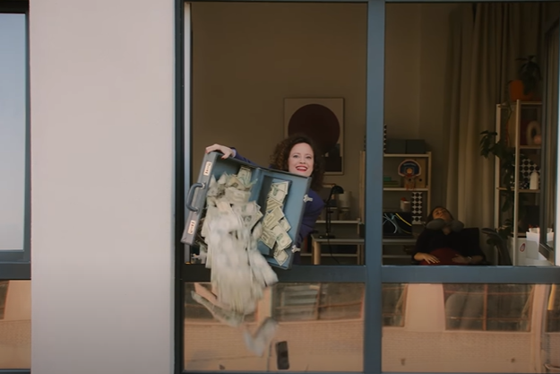 She opens LinkedIn Premium and types, “How can I stand out for this job?” The app gives her personalized advice. When she looks up, the clones are gone—now she’s the only version of herself. A voiceover says: “Standing out for the job. That’s Premium.”