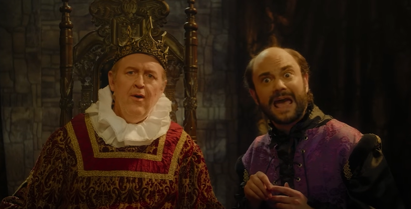 Inside a medieval throne room, an advisor proudly unveils a map covered in portraits of potential candidates for an accountant role. The king beams and asks how many fall “within our legal borders.” The advisor’s grin fades. “One,” he admits. The king slumps in disappointment. The single local candidate is revealed—a raccoon. The advisor tries to spin it: “With thumbs, my lord!”